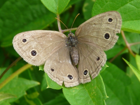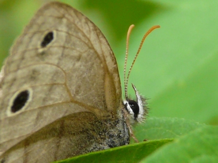 Two spots on each wing characterize this species. Usually they do not sit long enough for a photo, but fly in a "bouncy" way over the tops of vegetation. Their caterpillars feed on grasses. One more reason not to mow the grass.