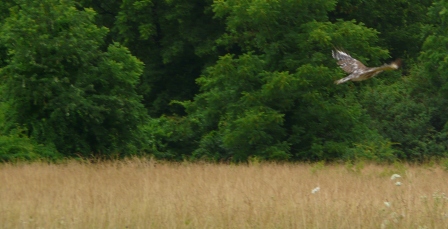 A liberal interpretation of the uses of a “bird box.” This immature red-shouldered hawk was driving the tree swallows crazy. At least four swallows were dive-bombing the hawk.