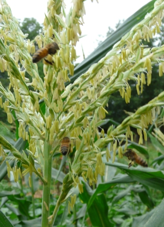 In my garden, medium size bumblebees come when the corn blooms to pollinate the corn. They are here for about a week and then they are gone. It’s a wonderful sight. Corn here is not “wind” pollinated!