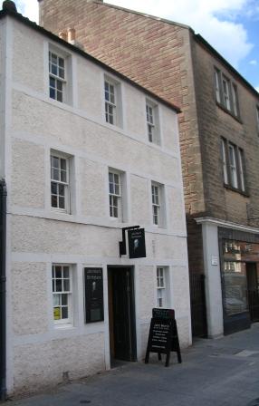 Muir's birthplace, now an interpretative center. In 1838, when Muir was born, the family quarters were cramped rooms behind a shop. The building has since been expanded and renovated.