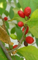 I sampled a few berries and they taste like a cross between allspice and liquorice, neither of which are high on my list of flavor preferences but then I’m not a wood thrush or a bear. The aftertaste lingers and matures into a sharp cayenne. According to Foster and Duke’s Medicinal Plants and Herbs, Native Americans used tea from the berries for coughs and other ailments and they squeezed oil from the berries to rub into rheumatic joints.