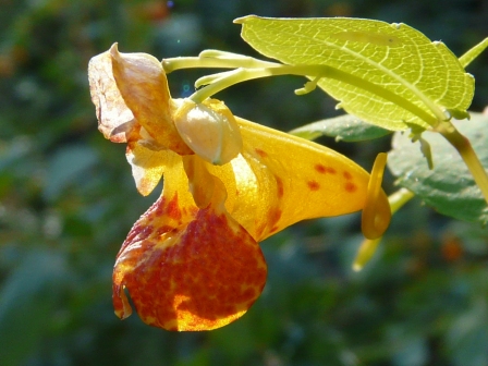 Jewelweed, Impatiens capensis, with nectar spur visible on the far right