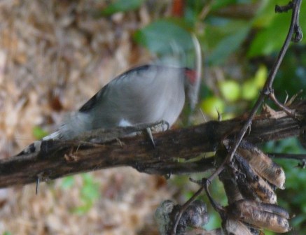 Downy woodpeckers love the dried flower stems of yucca plants. The stems stand for months after the flowers have died and woodpeckers visit them every few days. Presumably, woodpeckers are after the overwintering larvae of insects.