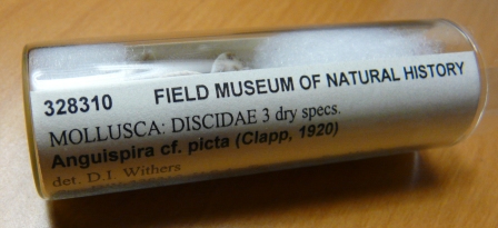 The Field Museum in Chicago has kindly lent me the only known museum collection of the tiger-snail variety that I’m writing up as a new species. Genetic data indicate that this population is distinct and quite different from the other species in our region. One of the shells in this tube will become the “holotype” of the new species, the physical specimen to which the species name is attached. This all depends on the approval of the peer-review process, so the holotype will not be official until (and if) the new species passes muster in review.