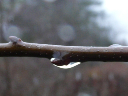 You would think that with all this rain, wild animals would have their fill of water. But goldfinches perched in the rain and carefully caught water drops from the underside of twigs. The birds would reach their heads down, below their feet, then twist to the side and scoop pendulous drops of water from under tree buds. The contrast between the elegance of the birds’ water-gathering and the disorganized squalling of the rain was striking.