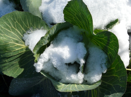 But this year, I found a variety that seems to do well: Johnny’s “Storage No. 4” — evidently named by a modern Wordsworth. I helped the plants along with a little Bt to control to loopers, gave them some extra compost, and kept them moist during the summer heat. For a modest plant, they certainly like being pampered. If you’re looking for a cheap pastoral metaphor, there it is.