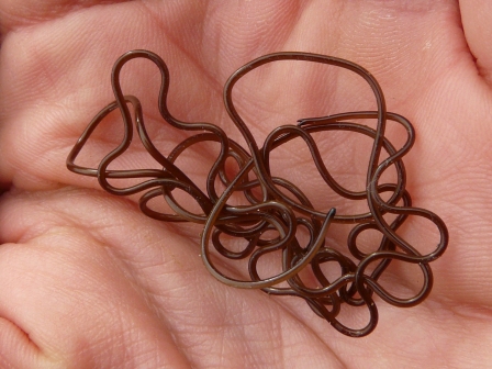 A nematomorph, also called a “horsehair worm.” These are parasites inside the bodies of insects. When the worm is ready to exit, it causes its host to jump suicidally into water, then the worm rips open the insect and emerges. These lovely critters feature in the first chapter of my book, The Forest Unseen -- nematomorphs surely embody one pole of nature’s range of cooperation and conflict.