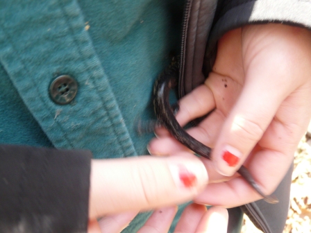 The tail of a spotted salamander...evidently a raccoon or some other predator ate well. We found spotted salamander eggs in a nearby pool, so life goes on, the torch has been passed, etc, etc ...fill in your own favorite death-surmounting cliche here...