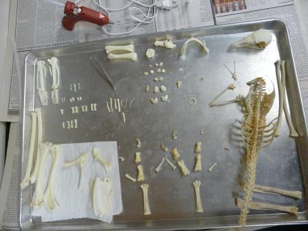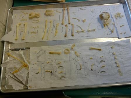 The bones are presently all cleaned up and ready to be put back together (owls and vultures shown below).