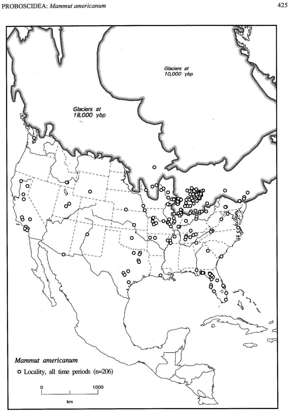 Each dot is the location of a fossil. Image from FaunMap: http://www.museum.state.il.us/research/faunmap/ This map is for the American mastodon. The fossils from Crete were mammoths, a different genus.