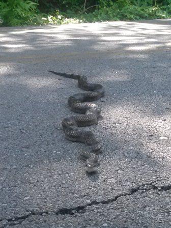 Hopefully the snake had the sense to stay off the road after I left. I’ll find out on my next ride. This road is heavily wooded and therefore great for viewing wildlife as I pedal Sisyphus-like up the mountain, but it is regrettably also good for finding road-killed beasts of all kinds.