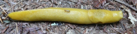 The slug is endemic to the Santa Cruz area (two other species are found elsewhere on the west coast) and is the mascot of UC Santa Cruz. The T-shirts say: “Banana Slugs: No Known Predators” which is catchy but not entirely true. The less well-informed Pacific giant salamanders eat them, as do snakes and some other creatures.