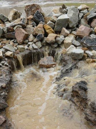 Muddy retention pit. Water flows directly out of this pit into the stream.