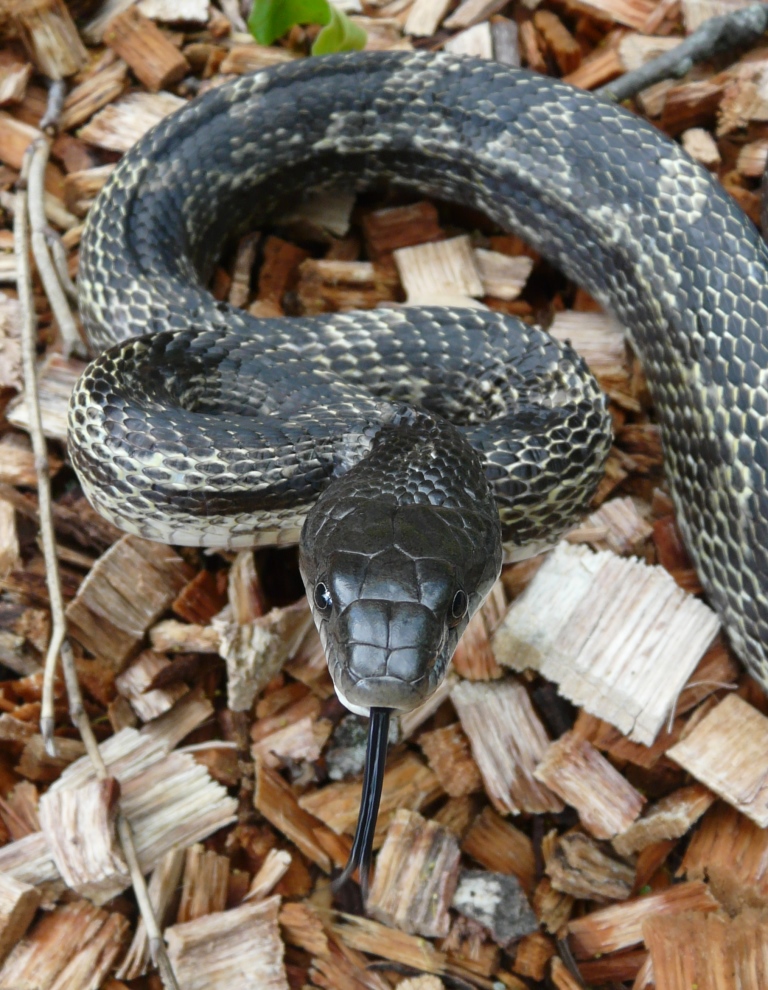 It is rat snake breeding season, so the animal no doubt has a social life to be getting on with. I returned it to the adjoining woods.