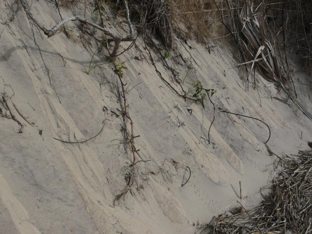 palm rootsboneyarddeadwoodStorms cause much of the erosion, but even on calm days the steep slope of the sea-facing bluffs are continually disturbed by small landslides: rivulets of North America sliding into the Atlantic.
