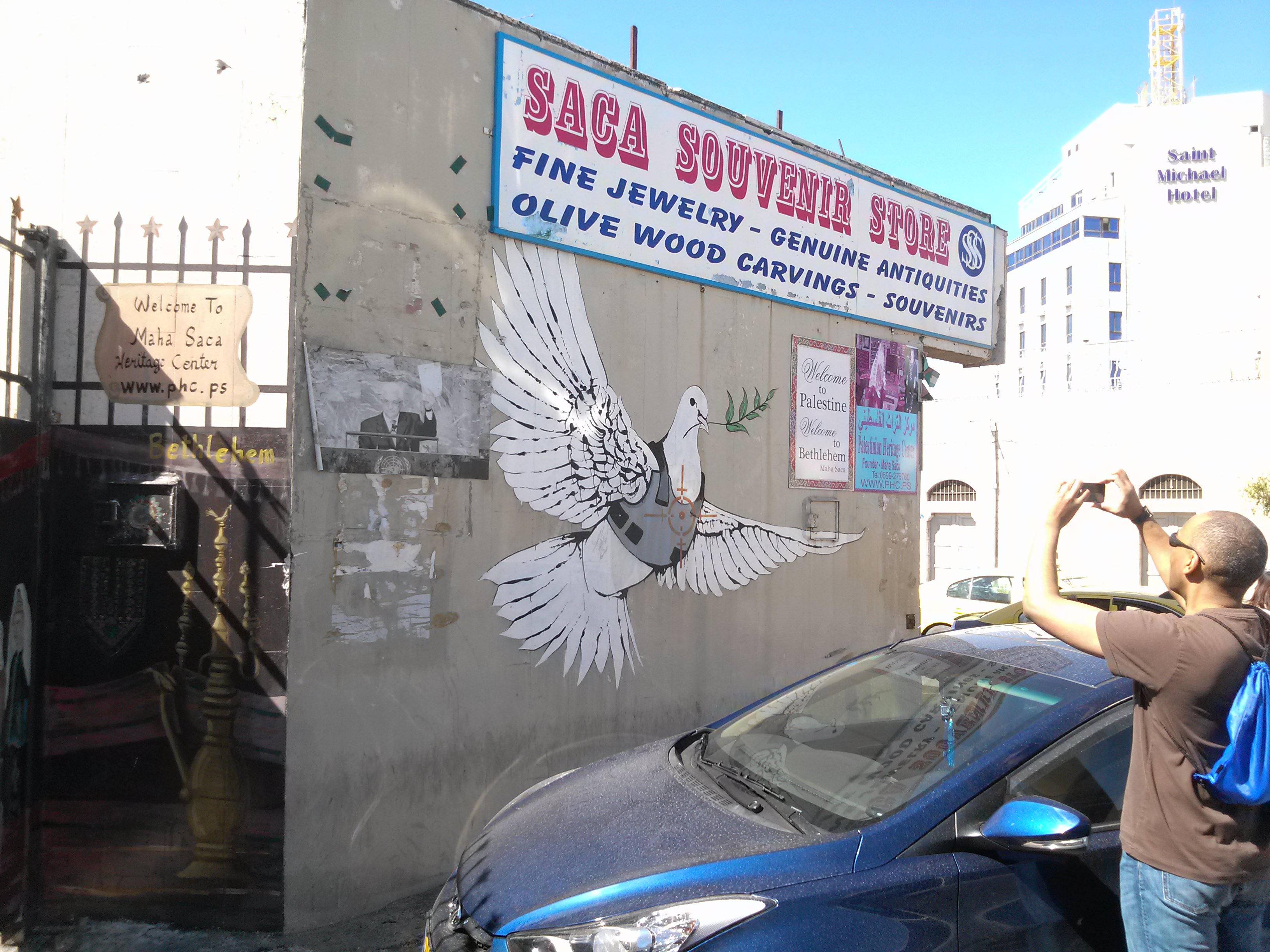 To close, here’s a Banksy from a building just behind the 8-12 ft concrete wall that separates the people of Bethlehem from Israel.