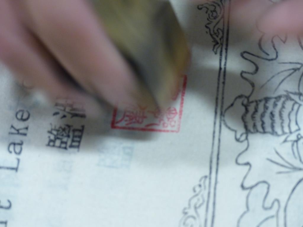 2014-10-10 Chinese block print 007Jianming Zou signs each printed sheet in red ink: