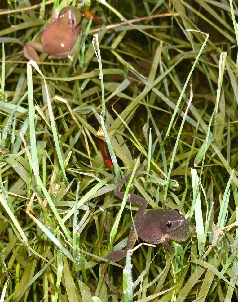 Prof. Hasklell – In small shallow pond in our woods-yard at 3000 feet,Tate Mountain, North Pickens County Ga., in January thaw we get Wood Frogs, Rana sylvatica, croaking somewhat like Cranes.They beat the regular spring peepers which come later and down near lake and springs,200 vertical and 1,500 linear feet below. John Kiser, Uncle of Miriam Keener, Sequatchie Cove Farm.