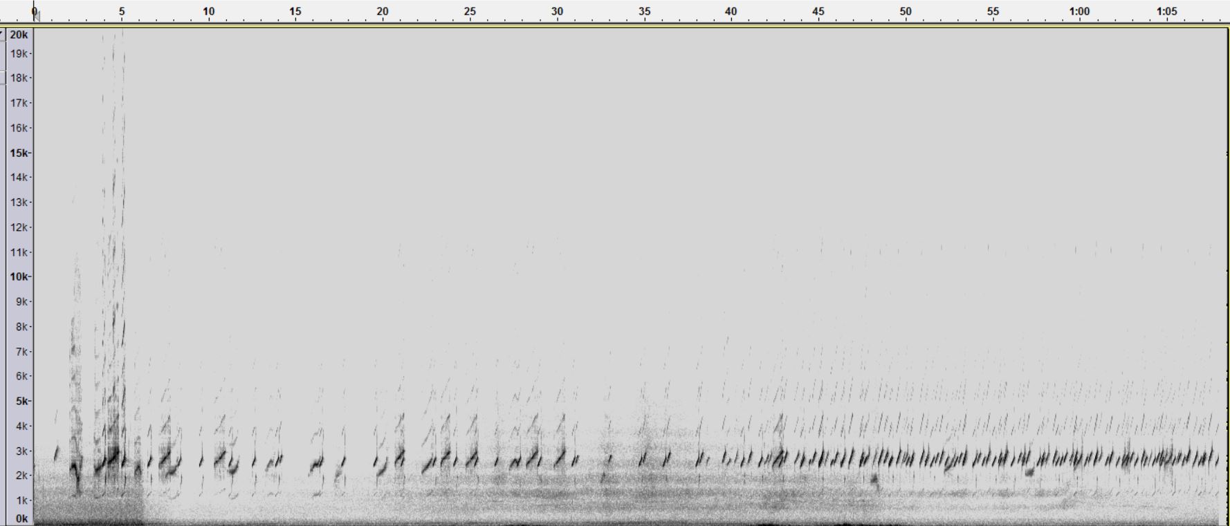 peeperspectroZoom in on the spectrogram (below) and we can see two call types: short upward sweeps and longer trilling sweeps. The short, untrilled sounds are the males calling to females; the zipped calls are aggressive signals to other males. Zip-a-dee-doo-dah. You can clearly hear each call type on the recording, minus Armstrong’s horn.
