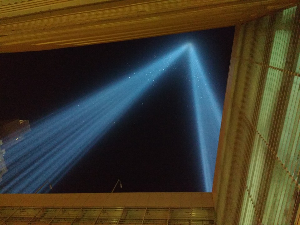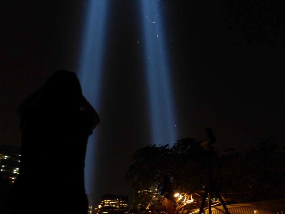 You can see them from sixty miles away: twin beams of light reaching from lower Manhattan into the highest visible reaches of the sky. The beams burn through the night on September 11th, a memory, a tribute in light made from 88 7000W xenon bulbs.