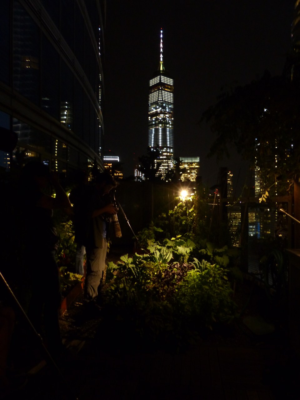 I joined NYC Audubon to monitor and count birds at the tribute. We watched from the Battery Rooftop Garden, a terrace filled with fruit trees and vegetable beds 34 stories above the street, right next to the beams.