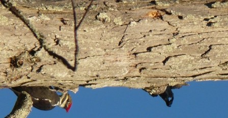 The yellow bar across the end of the waxwings’ tails is also produced by a pigment in the feathers. Over the last forty years, waxwings with orange-banded tails have appeared, especially in the north-eastern parts of the continent. At first, scientists speculated that this was a new mutation, spreading through natural selection. Further study showed that no genetic change was involved. Instead, the waxwings were feeding on the fruits of an invasive plant, Morrow’s honeysuckle, that contained orange pigment. If a molting waxwing feeds on this honeysuckle, the new feathers will pick up the orange pigment. In addition, all the fat in their bodies gets stained. I think of waxwings every time I see someone sucking on a blue slurpee. Surely their insides must be turning blue; maybe the hair will follow.