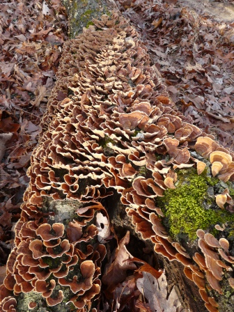 Some backstory: the American chestnut (Castanea dentata) was formerly one of the dominant trees in our region, comprising half of all the trees in many forests. In some places the species grew in pure stands, a fact that is commemorated in many place names (Chestnut Ridge, Chestnut Hollow, etc). Chestnuts produced annual crops of tasty nuts and many animals depended on this massive burst of autumnal nutrition to make it through the year. In the late 1800s a fungus (Cryphonectria parasitica, an ascomycete) came into the U.S. on trees (of another chestnut species) imported from Japan. The fungus spread from the New York City area across the entire Eastern U.S., wiping out chestnuts as it went. From about 1900 to 1940, almost every tree was killed. The ecology of our forests was forever changed; other trees increased in abundance and many animal populations undoubtedly declined significantly due to the loss of the chestnut crop. These changes took place at the same time as the forest was being hit hard by unsustainable logging and grazing, so these were not happy decades for woodlands.