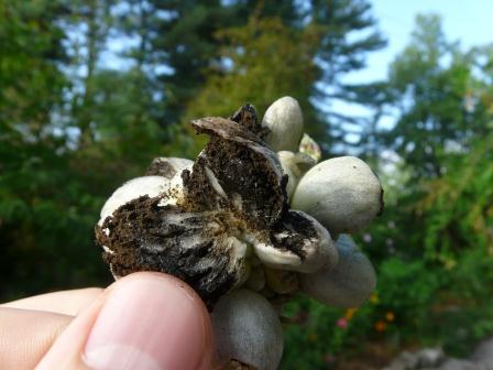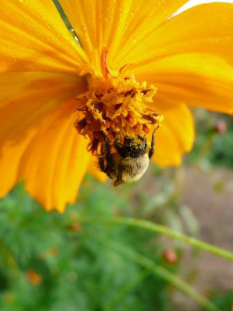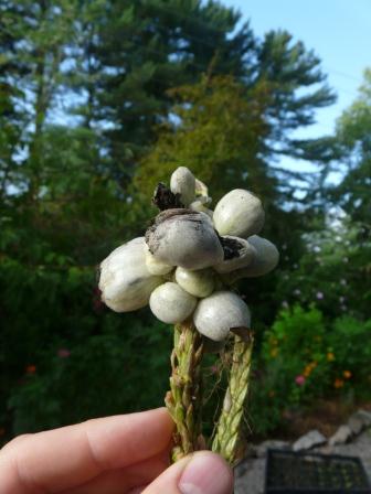 This week I took advantage of what may be the last warm, sunny days of the season to tidy up the bee hives for winter. I removed unneeded boxes of frames from the tops of the hives and shuffled frames within the boxes to keep as much honey in the hive as possible. Thus prepared, winter hives are less likely to blow over in storms and, more important, all the honey is gathered into one place within the hive. In cold winters, bees huddle in a ball around their honey stores, slowly eating the honey as fuel to keep them warm (the center of the hive is as warm as human body temperature). If honey is thinly dispersed, the balmy bee ball cannot form.