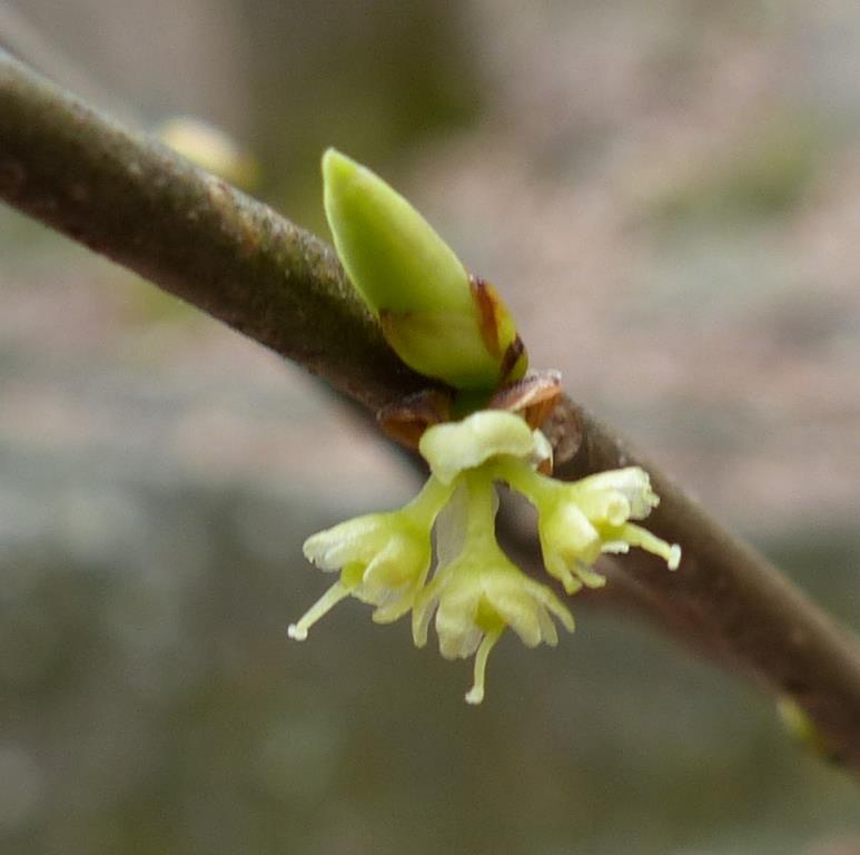 Spicebush: male flower. This species is dioeceous, meaning that each plant is either male or female with, no doubt, a few exceptions.