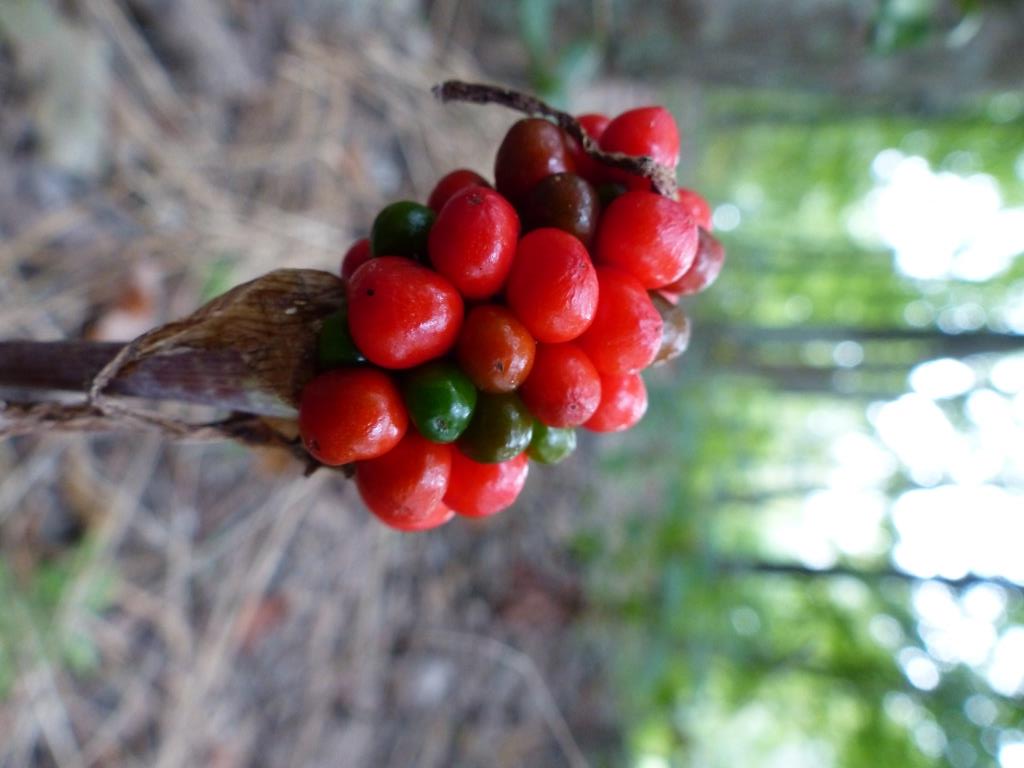 I’ve rambled about the color red before, both here on the blog (“Quite possibly the most overused image of North American birdlife”) and in The Forest Unseen (“November 5th — Light”). I’ll note briefly here that until the leaves fall in a few weeks, the plants face an uphill battle against the physics of light in the forest. It is dark in the woods these days (photography is impossible without steadying the camera on my boot or using a flash). The summer tree leaf canopy is not only robbing most of the light, it is selectively stripping out the reds. Only when a shaft of sun sneaks through a canopy opening do these fruits truly shine. As autumn comes on, the botanical beacons will light up more often.