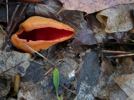 harbinger of springFungi are also poking through, spreading their spores from colored cups.