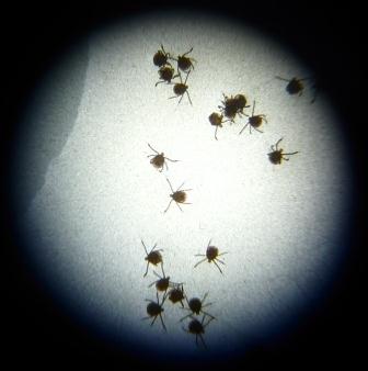My Advanced Ecology and Biodiversity class continues its investigation of our local tick populations. A few weeks ago, we collected ticks in the field and preserved some of them in alcohol. We’ve now looked through these collections using microscopes. We collected only “seed ticks,” little animals that are barely visible to the naked eye, so this close examination lets us identify the life stage and species of each individual.