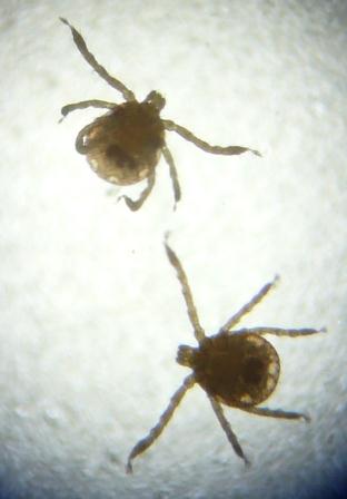 We also found a few dog tick larvae. Note the different shape of the mouthparts: