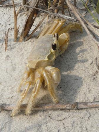Ghost crab — they live in deep burrows and love to eat turtle eggs.