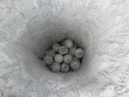Loggerhead turtle nest. This one is being moved upshore to keep it out of the drowning high tides.