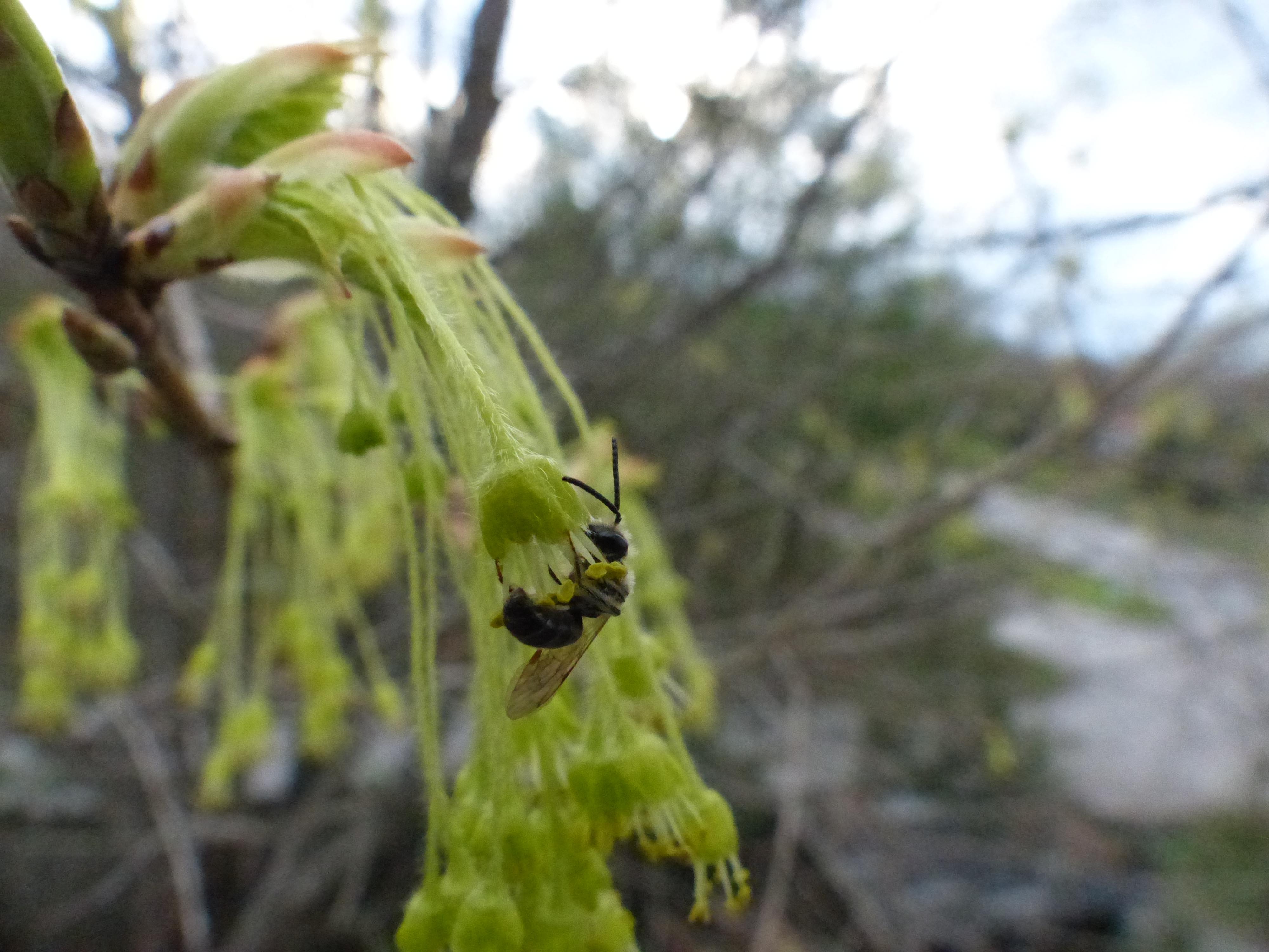 Bee in maple anthers