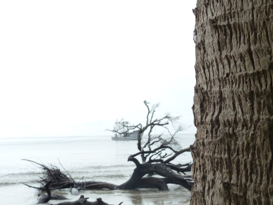 sabal-palm-trunk-looking-at-shrimping-boat-and-skeleton-trees