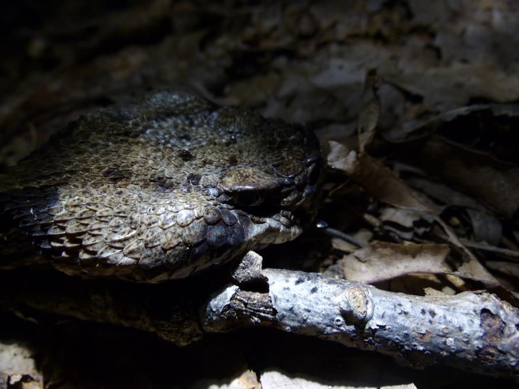 This is the year of the timber rattlesnake on the Southern Cumberland Plateau. I’ve seen and heard of more in the last five months than I have in the last twenty years combined. They’re sleeping in gardens, gliding across porches, crossing wooded trails, and swimming on asphalt. Most seem to be one or two years old, suggesting that we’re seeing the result of a baby-boom in 2013 or 2014. What might have caused such a successful hatch year is a mystery: perhaps a good mast year of acorns and hickory nuts swelled the rodent population, echoing a year later in the abdomens of fecund snake mothers? Another possibility is that the last two winters have been colder here than any within the last decade, pinching the rodent supply this year, making snakes take to the road where we then encounter them. Certainly 2014 was chipmunk-poor after the “Arctic Vortex” made several visits. I estimate an 80% drop in chipmunks the following spring.